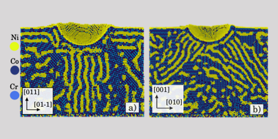 Przedmiotem symulacji prowadzonych w NCBJ było ustalenie właściwości, w tym także twardości stopu niklu, kobaltu i chromu. Naukowcy starający się poznać ograniczenia takiego materiału w toku swoich symulacji dostrzegli coś nietypowego. Okazało się bowiem, że chaotyczna struktura chemiczna stopu jest w stanie zmienić się pod wpływem punktowego nacisku. Tam, gdzie przyłożymy nacisk, np. za pomocą ostrza diamentowego, struktura krystaliczna ulega zmianie w ten sposób, że atomy niklu w bezpośrednim otoczeniu punktu nacisku zaczynają ustawiać się w struktury uporządkowane. Mało tego, nawet po usunięciu źródła nacisku, tj. ostrza, atomy niklu pozostają już w swoich nowych lokalizacjach. Należy tutaj jednak zauważyć, że do takiej zmiany ułożenia atomów dochodzi jedynie lokalnie, bezpośrednio pod ostrzem wywierającym nacisk na stop.