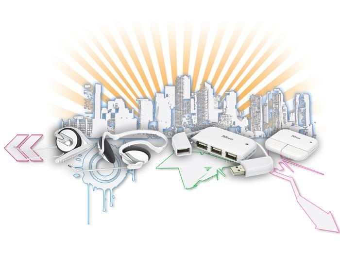 Innym nowym produktem Trusta dedykowanym netbookom jest hub USB. Fakt, że jest on wyposażony w cztery dodatkowe porty sprawia, że jest to produkt, który powinien sprawdzić się w czasie podróży. Porty umożliwiają podłączenie do netbooka zarówno aparatu fotograficznego, telefonu, jak i iPoda. Hub jest kompatybilny z szybkim łączem USB 2.0, lecz równie dobrze współpracuje z urządzeniami wyposażonymi w wersję 1.1 tego łącza. Systemy Windows i Linux także nie stanowią problemu dla tego zgrabnego, 4-portowego huba.