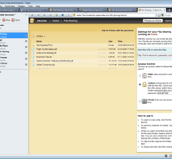 - Udostępnianie Dokumentów (File Sharing): dziel bezpiecznie pliki ze swojego komputera bez potrzeby umieszczania ich na serwerze. Najpierw wybierz katalog, z którego chciałbyś udostępnić pliki. Opera Unite wygeneruje wtedy bezpośredni adres URL do tego folderu. Dając znajomym ten link, będziesz mógł dzielić z nimi pliki bez potrzeby korzystania z obcych serwisów internetowych.