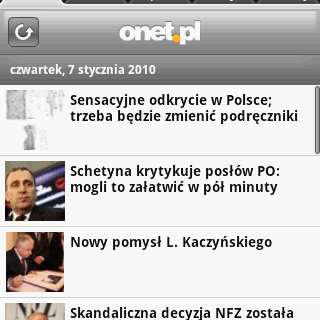 To pierwsza aplikacja Onetu dedykowana dla telefonów z Androidem. W ubiegłym roku Onet udostępnił już aplikację dla użytkowników telefonów iPhone. Program ciągle znajduje się na szczycie rankingu najchętniej pobieranych w Polsce z iTunes darmowych aplikacji w kategorii News.