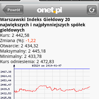 Sekcja Biznes została dodatkowo poszerzona o aktualne indeksy i notowania giełdowe oraz wygodny w użyciu kalkulator walutowy. Informacje sportowe są natomiast wzbogacone o dostęp do serwisu ‘wyniki na żywo’, w którym można śledzić toczące się w danym momencie rozgrywki w różnych dyscyplinach.