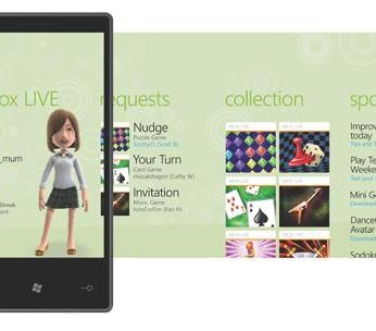 - Gry. Po raz pierwszy Microsoft oficjalnie udostępnia usługę Xbox LIVE użytkownikom telefonów, w tym gry Xbox LIVE, Spotlight oraz możliwość obejrzenia awatara, osiągnięć i profilu gracza. Usługa Xbox LIVE, która ma 23 miliony aktywnych użytkowników na całym świecie, oferuje kontakty z przyjaciółmi, gry i rozrywkę posiadaczom konsoli Xbox 360, a teraz również telefonów Windows Phone 7.