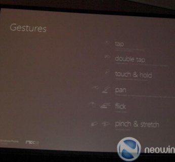 Ciekawe ograniczenie narzucono na gesty interfejsu. Pomimo, iż Windows Phone 7 wymaga od ekranu pojemnościowego rozróżniania czterech różnych punktów dotyku, tak gesty są ograniczone do raptem dwóch. Cztery palce wykorzystamy najprawdopodobniej w grach. Zaprezentowane gesty są dość standardowe: puknięcie, podwójne puknięcie, dotknięcie i przytrzymanie, przesuwanie, rozciąganie i ścieśnianie dwoma palcami, i tak dalej. Kolejne ograniczenie to pasek aplikacji (czyli ten, który wysuwamy z dołu ekranu). Mieści on maksymalnie cztery ikony, jednak Microsoft rekomenduje tylko trzy. Większość aplikacji będzie projektowana z jednoekranowym interfejsem, gdzie to, co się nie mieści, będzie przesuwane przez użytkownika w poziomie, na kolejnych kartach. To również nie jest obowiązkowy zapis, ale Microsoft zaleca właśnie takie podejście.