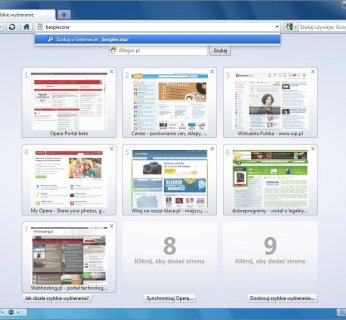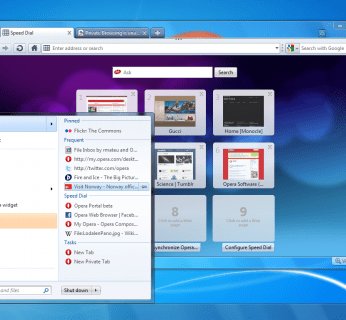 W Windows 7 i Windows Vista Opera wspiera funkcję Aero Peek i listy szybkiego dostępu oraz pozwala cieszyć się Aero Glass. Teraz możesz mieć dostęp do pozycji Szybkiego Wybierania, kart i nie tylko bezpośrednio z paska zadań.