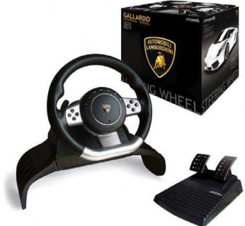 Kierownica LAMBORGHINI GALLARDO wyprodukowana na licencji włoskiego producenta samochodów sportowych, współpracuje z grami wyścigowymi na platformy: PlayStation2, PlayStation3 oraz PC. Jest to replika kierownicy z modelu Gallardo LP560-4 z centralnie umieszczonym metalowym logo LAMBORGHINI. Koło kierownicy ma średnicę 26 cm i pokryte jest tłoczoną, gumową powłoką. Sekwencyjna przekładnia biegów zintegrowana jest z kierownicą za pomocą dwóch cyfrowych dźwigni. Kierownica posiada funkcję Force Feedback, 6 poziomów czułości, 8-kierunkowy D-Pad, 12 przycisków akcji, zakres obrotu wynoszący 270 stopni oraz kabel o długości 210 cm. Kontrolera można używać trzymając go na kolanach, na dołączonej specjalnej nakładce lub mocując do blatu za pomocą śrub znajdujących się w zestawie. Do kierownicy dołączono pedały z funkcją hamulca i gazu. Cena detaliczna produktu wynosi 499,90 złotych.