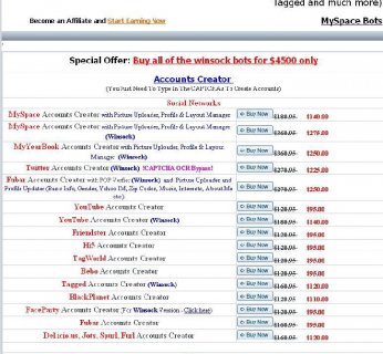 Publicznie dostępna strona internetowa zawiera obszerny katalog programów naśladujących zachowania człowieka i przeznaczonych do użycia w serwisach społecznościowych oraz w usługach webmail, takich jak Twitter, Facebook, Hi5, MySpace, MyYearBook, YouTube, Tuenti, Friendster, Gmail czy Yahoo.