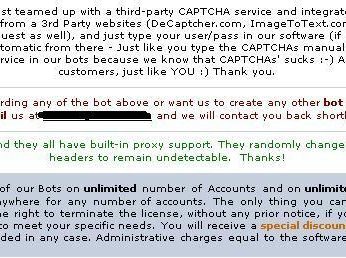 Najtańszy bot kosztuje 95 USD, najdroższy 225 USD. Cały katalog można kupić za 4 500 USD. Gwarantuje on niewykrywalność botów przez żadne rozwiązanie zabezpieczające, utrzymując, że mają one zdolność zmiany użytkowników, agentów i nagłówków tak często jak to konieczne, uniemożliwiając zablokowanie. Boty omijają również zabezpieczenia oparte na kodach CAPTCHA stosowane na wielu stronach internetowych, a nabywca musi tylko ustawić parametry i pozwolić botom na samodzielne działanie. Ponadto boty regularnie się aktualizują.