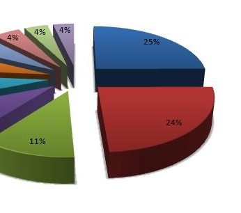 - W ciągu sześciu miesięcy ilość spamu farmaceutycznego osiągnęła nowy rekord – jego odsetek wzrósł z 51 do 66 procent. Podział spamu z pierwszej połowy 2010 roku przedstawia się następująco: