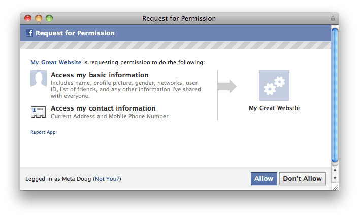 Tymczasem “nowa funkcja” dla twórców aplikacji nie różni się zbytnio od dotychczasowej polityki prywatności Facebooka. Gdy chcemy zainstalować jakąś aplikację, zawsze jesteśmy informowani o tym, że będzie ona miała dostęp do niektórych naszych danych w serwisie.