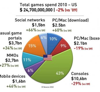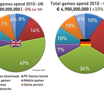 Najpierw parę wyników dotyczących całej branży. Amerykanie wydali na gry 2% mniej niż w 2009 roku, łącznie 24,7 mld USD. Anglicy natomiast 3% mniej, a więc 3,7 mld. funtów. Największy kryzys przeżyła natomiast branża gier w Holandii. Tutaj konsumenci wydali zaledwie 410 mln Euro, a spadek zainteresowania grami wynosi aż 27%. W przyrodzie jednak nic nie ginie. Niemcy wydały 33% więcej, wzrost nastąpił także we Francji.