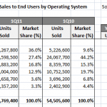 Biorąc jednak pod uwagę systemy operacyjne, to sytuacja ma się nieco inaczej. Symbian Nokii odnotował bowiem rekordowy spadek, bo aż o 16,8 procent. Pierwszy kwartał bieżącego roku jest też pierwszym, w którym Android jest najlepiej sprzedającym się ogólnoświatowo mobilnym systemem operacyjnym, pokonując Symbiana. Apple iOS (ale nie w wersji dla iPada i iPoda) podwoił ilość sprzedanych kopii, będąc tuż za Androidem.