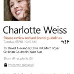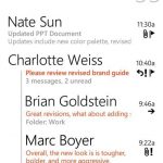 Druga, to wątkowanie wiadomości, w tym maili. Trzecia, to wyszukiwanie treści na serwerze pocztowym (np. Exchange), a nie tylko w wiadomościach przechowywanych w pamięci telefonu.Czwarta, to opcjonalna (poprzez Marketplace) integracja z systemem usługi Lync, która umożliwia łatwą wymianę informacji z grupą współpracowników wewnątrz organizacji.