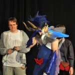 I na zakończenie obejrzeliśmy też Cosplay, na którym co prawda było dość mało uczestników – ot 6 prezentacji, ale była kupa śmiechu i gromkie brawa dla każdej postaci. Ja bawiłam się znakomicie i przy totalnie źle zsynchronizowanej grupie Yattamana i przy skromnej Princess Serenity i przy zwycięskiej grupie Rycerzy Zodiaku, którzy ujęli wszystkich humorystycznym wykonaniem piosenki (ach nie podam skąd ona jest – sami odgadnijcie), dobrym odwzorowaniem strojów i ładnymi uczestniczkami (wszyscy) oraz przystojnym uczestnikiem ( Zel, pozdrawiam! )