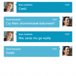- Informacje o dostępności współpracowników w czasie rzeczywistym i wygodne wybieranie najlepszej metody komunikacji: za pomocą wiadomości błyskawicznych, poczty e-mail lub połączenia telefonicznego.