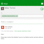 Przestrzeń dyskowa na SkyDrive będzie widziana jako pamięć systemowa: twórcy aplikacji nie będą musieli dopisać ani jednej linijki kodu, by ich program mógł zapisywać dane na e-dysku Microsoftu. SkyDrive będzie też dostępny pod ręką w pasku Charms Bar, dzięki czemu będzie można w szybki sposób dzielić się ze znajomymi umieszonymi tam treściami.