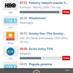 Użytkownik ma więc do dyspozycji m.in. opcję “przypnij do ekranu startowego”, czyli dostęp do aktualnego programu TV zawsze na pulpicie telefonu, za pomocą tzw. kafelków. Użytkownik może umieścić na ekranie głównym zarówno całą aplikację, jak i pojedyncze ulubione kanały telewizyjne. Do swojej dyspozycji ma też dwie skórki – jasną i ciemną.