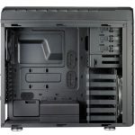 Dla jednego napędu 2.5″ producent przygotował specjalny punkt mocowania znajdujący się po drugiej stronie ramy montażowej płyty głównej. Produkt Cooler Master oferuje również rozbudowany panel przedni udostępniający po dwa porty USB 3.0 i USB 2.0, wejście i wyjście audio oraz ledowy system kontroli wentylatorów. Dla osób zostawiających różne drobiazgi przy komputerze przydatna okaże się specjalna wnęka w górnej części obudowy, która wyłożona jest gumową podkładką.