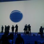 Jeszcze co do wyglądu samej słuchawki: jak zobaczyłem ją na wielkim ekranie, roześmiałem się na głos. Siedziałem obok Ewy Lalik ze Spider’s Web i Bartka Dula i żeśmy rechotali jak głupi. Na fotkach wygląda tandetnie. Niczym przerośnięta Spica. Mina mi zrzedła jak wziąłem go do ręki. Plastik, fakt, ale ten najwyższej klasy. Czuć, że trzyma się w ręku coś wypieszczonego, coś bardzo drogiego. Co ciekawe, bardzo mi się spodobała “kolorowa”, niebieska wersja. Nie jest ani elegancka, ani młodzieżowa, ani tandetna. Coś po środku. Fajny, intrygujący odcień i tekstura. Nie byłem w stanie ocenić czy dobrze się go trzyma (wyważenie) z uwagi na to, że był przypięty mocno naciągniętą, elastyczną smyczą.