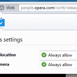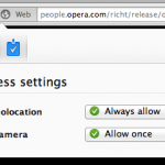 Opera 12 to również jeszcze bardziej czytelne informacje o zabezpieczeniach danej witryny i ewentualnym naruszaniu przez nią prywatności. Za pomocą czytelnych kolorów i ikon wiemy, czy strona jest szyfrowana, czy jest zaufana, a także czy chce skorzystać z geolokalizacji lub naszej kamery internetowej (do tego ostatniego pojawiło się dedykowane API).