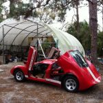 Końcowa specyfikacja samochodu nie należy do najlepszych, ale musimy pamiętać, że to samochód stworzony przez jednego człowieka. Tak więc zasięg na jednym ładowaniu wynosi około 200km, baterie zamontowane przynajmniej na razi, mają pojemność 36 kWh, a prędkość maksymalna tego cudeńka to 210 km/h. Przyznam się szczerze, że osobiście bałbym się tym jeździć więcej niż może 50 km/h. W końcu przed niczym nie ochroni mnie ten kawałek włókna szklanego z odrobina elektryki. Może oni tam w Ameryce jeżdżą takimi “zabawkami”, ale ja muszę mieć porządny samochód, który podczas zderzenia albo co gorsza dachowania nie złoży się jak domek z kart. Jednak sam konstruktor też chyba nie jest przekonany z wytrzymałości swojego dzieła. Na filmiku pokonuję kilka kilometrów, a wszelkie wystawy samochód odwiedza na lawecie. To przepraszam, po co tworzyć taki samochód? Po to żeby postała w garażu, a jak wnuki się znudzą to oddadzą do muzeum. Ja rozumiem, różnie ludzie przeżywają kryzys wieku średniego, ale większego bezsensu dawno nie widziałem.