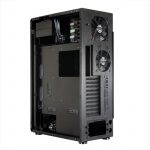 W środku zamontujemy płytę główną w standardzie E-ATX/ ATX/ Micro-ATX, a w chłodzeniu pomogą 3 wentylatory 140mm z przodu obudowy oraz po jednym w rozmiarze 120 i 140mm na tylnym panelu. Ciekawym rozwiązaniem okazuję się tu zamontowanie zatok 5,25′ z boku obudowy, a nie jak w każdej obudowie z przodu. Nam byłoby chyba trudno się przestawić na takie rozwiązanie, ale kto co lubi.