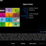 Równie łatwo jak filmy, XBMC odtworzy nasze zbiory muzyki, zarówno z zasobów lokalnych, jak i serwisów internetowych. Bardzo przydatna jest opcja pobierania i wyświetlania informacji o wykonawcach i albumach. Po zainstalowaniu dodatkowych wtyczekbędziemy też automatycznie pobierać informacje o płycie CD-Audio, teksty piosenek i okładki albumów. XBMC udostępnia nam także funkcję karaoke, gdybyśmy chcieli zamienić nasz salon w miniaturową estradę. Domyślnie instalowane są trzy moduły wizualizacji dźwięku. Najbardziej efektownym jest Milkdrop, znany jeszcze z czasów świetności Winampa.