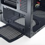 Bardzo praktyczne okazują się także dwa filtry przeciwkurzowe umieszone od spodu obudowy (jeden pod zasilaczem oraz jeden pod ewentualnym, kolejnym wentylatorem 120 mm), oraz wycięcie w tylnej ściance umożliwiające demontowanie układu chłodzenia bez konieczności wyjmowania płyty.