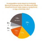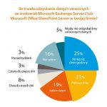 42 proc. badanych firm deklaruje, że w ubiegłym roku w ich biurze miał miejsce przynajmniej jeden przypadek utraty danych gromadzonych za pośrednictwem rozwiązań Exchange lub SharePoint. Co czwarty ankietowany przyznał, że takich przypadków było kilka. Jednocześnie przedstawiciele co piątej firmy, która utraciła dane ocenili, że była to utrata dostępu do danych pierwszego stopnia, a więc bardzo poważne zaburzenie pracy systemu, np. jego całkowita awaria. 16 proc. doświadczyło utraty drugiego stopnia, a więc poważnych zakłóceń, 37 proc. szacuje swoją utratę jako stopień trzeci – sporadyczne zakłócenie funkcjonowania.18 proc. mówi o zakłóceniu czwartego stopnia, a więc minimalnej awarii, wymagającej drobnych czynności naprawczych.