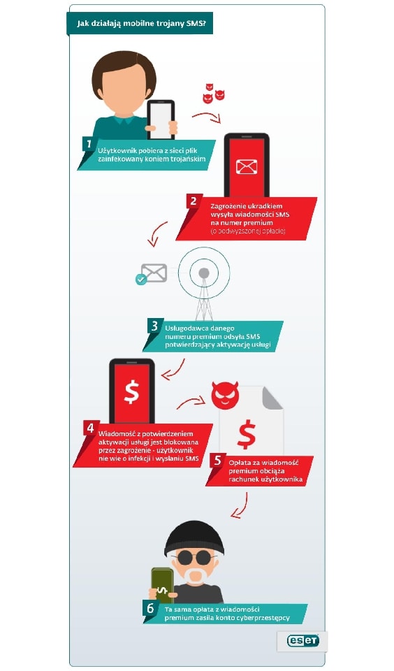 Po zagnieżdżeniu się w pamięci telefonu Trojan Boxer.AA identyfikuje kody MCC (Mobile Country Code) oraz MNC (Mobile Network Code), dzięki którym wie, w jakim kraju i z jakiej sieci korzysta jego ofiara. Następnie Boxer.AA koreluje wspomniane kody z numerem telefonicznym, na który przesyła wiadomość SMS premium — tłumaczy zasadę działania zagrożenia Kamil Sadkowski, analityk zagrożeń z firmy ESET . Trojan zaciera wszelkie ślady swojej aktywności, ukrywając przed użytkownikiem m.in. wiadomości potwierdzające aktywację usługi dla danego numeru premium. Boxer.AA próbuje również wykorzystać połączenie z Internetem, aby dotrzeć do jednego z dwóch adresów WWW, dzięki którym trojan może zapisać swoją ofiarę do kolejnej usługi premium — dodaje Sadkowski.