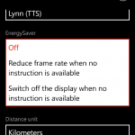 - Oszczędność energii: dzięki funkcji EnergySaver można przedłużyć czas działania urządzenia na baterii – poprzez zmniejszenie częstotliwości wyświetlania klatek lub wyłączenie wyświetlacza, gdy nie ma nowych wskazówek dojazdu. Aplikacja wraca do normalnego trybu, gdy pojawiają się kolejne wskazówki nawigacyjne.