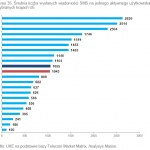 Jeśli chodzi o wysyłanie SMS-ów to Polacy nie należą do europejskich rekordzistów. Podobnie jak w poprzednim roku, dla wskaźnika przedstawiającego średnią liczbę wysłanych SMS na jednego aktywnego użytkownika, Polska ponownie znalazła się poniżej średniej unijnej. Przeciętny użytkownik w kraju wysłał 1043 wiadomości, wobec średniej dla wybranych krajów UE – 1055.