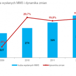 Raport UKE pokazuje, że również MMS cieszy się w Polsce coraz większą popularnością. W 2012 roku użytkownicy polskich sieci mobilnych wysłali ponad 391 mln wiadomości multimedialnych, tj. o 65 mln więcej niż w roku poprzednim. Na statystycznego mieszkańca kraju w 2012 roku przypadło ponad 10 wiadomości MMS, czyli o 1,5 więcej niż w 2011 r.