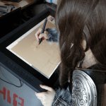 Z kolei dzięki uprzejmości firmy Wacom mogliśmy zorganizować naszym gościom konkurs plastyczny. Zadanie było proste: każdy chętny ma 30 minut na narysowanie statku kosmicznego, postaci steampunkowej lub “bad guy’a”, czyli dowolnego złoczyńcę z dowolnego uniwersum (w tym tego pochodzącego z wyobraźni rysownika). Do dyspozycji były tablety Bamboo i Cintiq. Efekt przeszedł nasze najśmielsze oczekiwania, niektóre z prac to małe dzieła sztuki. Wkrótce je opublikujemy i nagrodzimy zwycięzcę. A do wygrania był tablet Wacomu… o którym, póki co, nie możemy wam powiedzieć zbyt wiele. Wacom bowiem zaprezentuje go na targach IFA 2013. Wiemy, że ma być supernowoczesny, także było o co walczyć.