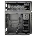 Napędy – zarówno 3,5-calowe dyski twarde jak i napędy optyczne 5,25 cala – montuje się bez użycia narzędzi. W obu przypadkach dostępne są odpowiednie saneczki montażowe. Boki obudowy dostępne są w wersji pełnej oraz z szybą, co powinno ucieszyć moderów. W komplecie jest też zestaw wentylatorów. Gabaryty (a co za tym idzie dostępna przestrzeń wewnątrz) zestawu umożliwiają zbudowanie bardzo wydajnej platformy.
