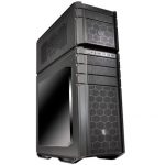 Model HAF Stacker 935 to składająca się z dwóch oddzielnych części obudowa, którą można doposażyć w kolejne moduły. HAF 925 to większy z elementów (mid-tower), umożliwiający montaż płyty głównej w formacie ATX, w HAF 915 zmieści się płyta mini-ITX. Jeśli nie potrzebujemy drugiego komputera, w mniejszym module z powodzeniem zmieści się radiator i zbiornik z cieczą chłodzącą. Obudowa jest na tyle pojemna, że entuzjaści będą mogli w niej zamontować aż cztery wydajne karty graficzne o długości maksymalnie 354 mm. W połączonych obudowach jest miejsce na aż dziewięć dysków twardych i cztery napędy w formacie 5,25″ – wszystkie z nich montuje się bez użycia narzędzi. Miejsce na zasilacz ATX znajdziemy zarówno w HAF 925 jak i HAF 915. Oba moduły, zarówno na górze jak i na dole, wyposażone są w relingi montażowe, mogą zatem być ustawianie w dowolnej konfiguracji. Ponadto panel z włącznikiem i portami USB 3.0 da się zainstalować w dowolnym z nich. Konstrukcja modułów umożliwia łatwe przeprowadzenie między nimi kabli lub rurek z chłodziwem. “Piętra” oddzielone są elementem z wyciętymi otworami zabezpieczonymi gumowymi wkładkami. Ułatwia to organizację przewodów i zapobiega niepotrzebnemu przenikaniu kurzu w sytuacji gdy postawimy na chłodzenie wodne i pozbawimy HAF 925 wentylatorów. W HAF 915 zmieści się wówczas zarówno zbiornik płynu, pompka, chłodnica, jak i komplet wentylatorów. W obudowie znajdziemy też łatwe do demontażu i czyszczenia filtry zanieczyszczeń (góra, dół, przód i panel boczny).