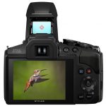 Ale nie to jest najciekawsze. Szczególną uwagę zwraca bowiem rozwiązanie, którego w tej postaci nie stosował do tej pory żaden producent aparatów. Jest nim dodatkowy celownik umieszczony między “nóżkami” podnoszonej lampy błyskowej. Po co? Przy tak długich ogniskowych nieraz naprawdę trudno trafić w wybrany wcześniej szczegół kadru. Do tej pory jedyną skuteczną metoda było w takim wypadku “odjechanie” zoomem (czyli skrócenie ogniskowej), wycelowanie i ponowne wydłużenie ogniskowej. W przypadku Olympusa SP-100EE wystarczy ustawić krzyżyk celownika dokładnie w miejscu, które chcemy objąć w obiektywie, a następnie ustalić dokładny kadr z pomocą tylnego ekranu lub wizjera elektronicznego. Odnalezienie w nim wybranego przez nas motywu powinno być w takim wypadku znacznie łatwiejsze.