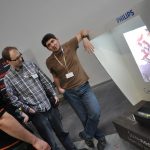 Goście z lekką dozą niepewności podchodzi do bezdotykowego kontrolera Leap Motion. Do sterowania interfejsem niczym w “Raporcie Mniejszości” jeszcze daleka droga, ale mogliśmy już teraz przeżyć namiastkę przyszłości. Leap Motion nie jest intuicyjnym urządzeniem – by opanować go do perfekcji trzeba nauczyć się konkretnych gestów i wyczuć sprzęt. W prostych aplikacjach takich jak mapy Google’a czy grach typu Cut the Rope kontroler sprawdza się bardzo dobrze, natomiast w przypadku bardziej zaawansowanych programów służących do modelowania obiektów 3D bywało już różnie. Mimo to wszyscy byliśmy zgodni, że ten sprzęt niesie w sobie fajny potencjał, który na wzór Kinecta będzie mógł być wykorzystany w różnych dziedzinach technologii.