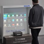 – niezwykły projektor Philipsa, który może wyświetlać obraz o przekątnej 50 cali z odległości zaledwie 10 cm od ściany. Im dalej jednak ustawimy go od bocznej powierzchni tym większy obraz uda nam się uzyskać (nawet o przekątnej 100 cali!). Dzięki systemowi głośników 2.1 możemy go także traktować jako alternatywę dla telewizora, tym bardziej, że możemy umieścić go przecież na standardowym stoliku pod TV. Screeneo posiada Androida na pokładzie i bez problemu możemy go także wykorzystać jako odtwarzacz plików multimedialnych z pendrive’ów, kart pamięci czy DLNA – równie dobrze zainstalujemy na nim aplikacje pokroju IPLA by strumieniować filmy prosto z sieci.