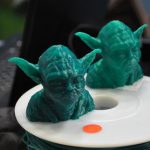 Dzięki uprzejmości poznańskiej firmy Omni3D mogliśmy też prezentować na naszym stoisku drukarkę 3D. O jej zaletach opowiadał pracownik firmy, który na żywo demonstrował cały proces działania. Z włókien PLA drukowaliśmy na Pyrkonie dwudziestościenne kostki i popiersia Yody z Gwiezdnych Wojen, a nawet muchę i gogle do steampunkowego przebrania!