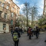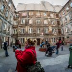 Potem rozpoczęły się niesamowite praskie podwórka! Trochę się ich obawialiśmy, ale okazało się, że było naprawdę bezpiecznie i bez problemu weszliśmy wszędzie tam, gdzie planowaliśmy. Z naszej strony staraliśmy się przy tym jak najmniej przeszkadzać mieszkańcom – zarówno szkolenia fotograficzne, jak i pasjonujące opowiadania przewodniczek z Warszawskiej Fabryki Spacerów miały miejsce poza podwórkami.