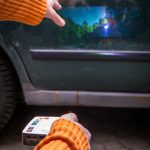 Do przeprowadzenia wykładu użyliśmy… projektora. Nie, nie rozstawialiśmy mini-stanowiska z notebookiem i nie podciągaliśmy prądu z najbliższej latarni. Po prostu wyciągnęliśmy z kieszeni Philipsa PicoPix 3410 i wyświetliliśmy kilka slajdów. Gdzie? Gdziekolwiek;-) W tym przypadku na stojącym w pobliżu samochodzie: