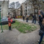 Okazje do wykonania wielu ciekawych zdjęć portretowych mieliśmy na Fotospacerze dwie. Za pierwszym razem miały pozować nam dwie prześliczne młode suczki – Dana i Daria. Danę onieśmieliła jednak duża liczba wycelowanych w nią obiektywów, więc to Daria mogła poczuć się niemalże jak psi celebryta;-) Drugim “portretowym” przystankiem było spotkanie z Gabrielą i Grzegorzez z Grupy Teatralnej Warszawiaki. Przy okazji wysłuchaliśmy kilku prawdziwie warszawskich szlagierów, jakie śpiewa każda szanująca się kapela podwórkowa: