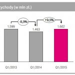 W pierwszym kwartale 2015 r. T-Mobile uzyskał przychody w wysokości 1,602 mln złotych, osiągając wzrost o 9,5% rok do roku. Firma zawdzięcza to znacznemu wzrostowi przychodów z rynku biznesowego, ale dobry wynik osiągnięto również w segmencie klientów indywidualnych. EBITDA wyniosła 544 mln złotych (w porównaniu z 557 mln złotych w I kw. 2014 r.), co oznacza spadek o 2,4%, zaś marża EBIDTA zmniejszyła się z 38,1% w I kw. 2014 r. do 33,9% w I kw. 2015 r.