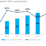 Urząd Komunikacji Elektronicznej w swoim raporcie wskazuje na systematyczny wzrost liczby wysłanych wiadomości MMS. W 2014 r. użytkownicy sieci mobilnych wysłali łącznie ponad 527 mln MMS, tj. o 82 mln więcej niż w roku poprzednim. Na statycznego mieszkańca kraju w 2014 r. przypadło 14 wiadomości MMS, czyli o 2 więcej niż w roku 2013. Oznacza to wzrost rok do roku o 18,4%.