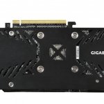 Ponadto GV-R938XG1 Gaming-4GD wyposażony jest w metalowy backplate, zapewniający ochronę płytki PCB oraz usztywniający całą konstrukcję. Na górnej krawędzi obudowy znajdziemy także podświetlane logo Windforce.