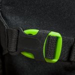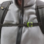 Pierwsza niespodzianka – Case Logic Kontrast nie jest wyposażony w pas lub choćby pasek biodrowy – cały ciężar plecaka cały czas spoczywa wyłącznie na naszych ramionach. Pocieszające jest tylko to, że pasy naramienne możemy ustabilizować dodatkowym paskiem spinanym na klatce piersiowej, z wygodnie działającym systemem regulacji pionowej.
