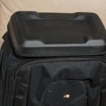 I jeszcze jedna kwestia – przez dłuższy czas intensywnie szukałem też jakiejś komory czy kieszonki, w której byłaby ukryta dodatkowa nakładka przeciwdeszczowa. Ku memu zaskoczeniu nic nie znalazłem – Case Logic Kontrast to plecak fotograficzny bez dodatkowego pokrowca przeciwdeszczowego w komplecie. Warto jednak podkreślić, że sam poliestrowy materiał DuraBase, z którego wykonany jest plecak, określony został przez producenta jako wodoodporny. Nie spacerowałem z tym plecakiem w dużej ulewie, ale mogę potwierdzić, że mniejsze deszczyki rzeczywiście nie robiły na nim żadnego wrażenia.