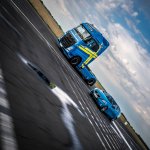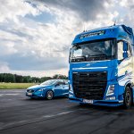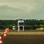 Najważniejsze ćwiczenia przygotowane przez profesjonalistów z grupy Fotospacery.pl obejmowały dwa sposoby fotografowania samochodów w ruchu: panoramowanie jadącego samochodu z pobocza toru oraz z jadącego przed nim samochodu. Oba pozwalają na wykonanie zdjęć, które stanowią swoistym paradoksem – zatrzymują czas, ale mimo wszystko pełne są ruchu i dynamiki. W tym ćwiczeniu w roli modeli wystąpiły: najnowsze Volvo S90 a także niezwykły duet: sportowa wersja Volvo V40 T5 w kolorze Rebel Blue zestawiona z ciągnikiem siodłowym Volvo, pomalowanym lakierem o niemal identycznym odcieniu. Razem ta niezwykła para dysponowała mocą blisko 800 koni mechanicznych!