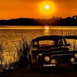 Wraz ze zbliżającym się wieczorem warsztaty przeniosły się na brzeg położonego niedaleko zalewu, gdzie na tle zachodzącego słońca uczestnicy warsztatów fotografowali dwa klasyczne, przepiękne modele Volvo: PV544 i P1800S. Tym razem były to zdjęcia statyczne, skupione na wydobyciu wspaniale poprowadzonych linii i brył obu pojazdów z wykorzystaniem zastanego światła zachodzącego słońca.