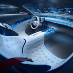 W środku – jak to w autach typu koncepcyjnego – pełen odlot, kosmos i… klasyczna kierownica. Tym razem ani słowa na temat autonomicznej jazdy, choć w przyszłości – jeśli ten projekt kiedykolwiek przeszedłby do fazy produkcyjnej – na pewno odpowiednie czujniki i systemy zostaną dodane.